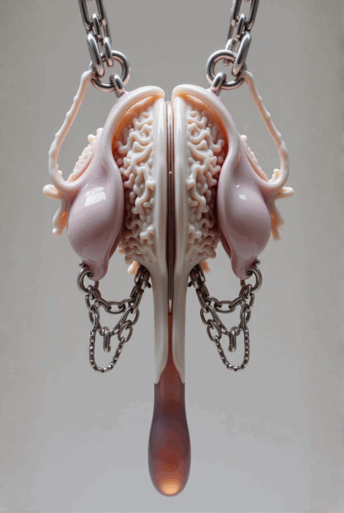 Integrating cyber-feminism, queer ecology, and crip poetics, Exquisite Machines for Making Anything But Children is a speculative counter-anatomy conceived by Eva Grant for healing following her miscarriage. In a society obsessed with viability, this series cuts the cord between reproduction and utility, repositioning the womb not as a site of extraction, but rather an incubator of autonomy. Midwifing refusal, Exquisite Machines do not produce children; they are a surrogate for futures the world is not yet equipped to carry.