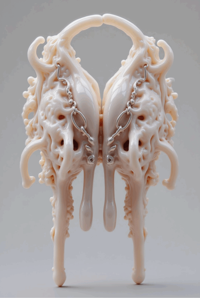 The jury recognizes Eva for her bold digital exploration of speculative, queer reproductive organs—forms that echo the anatomical while also departing into the surreal. Her work confronts feminist biopolitics and the social construction of reproductive bodies in relation to commodification, fetishization, and the pressures of heteronormativity. Glossy, fleshy, and intricately entangled, these sculptural renderings pulse with both vulnerability and power. Distinct in concept and form, Eva’s radical refusal of AI in favor of meticulously modeled, artist-driven digital creation asserts both an aesthetic and political stance, making the work as unsettling as it is striking.